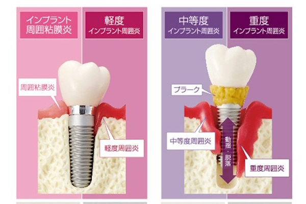 インプラントの周囲に細菌が侵入して炎症を起こす病態で、放置すればインプラントの脱落につながる重大なトラブルです。原因は、セルフケア不足・メインテナンス不備・喫煙・糖尿病など多岐にわたります。